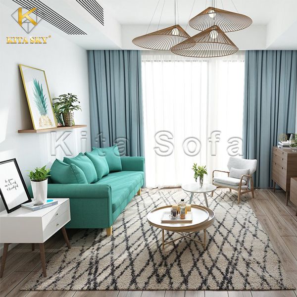 Như đã đề cập, sắc xanh lam ngọc đa dạng với nhiều tông đậm nhạt. Chính vì thế mà sofa màu xanh ngọc cũng rất đa dạng. Chưa kể là sofa có nhiều chất liệu như vải bố, vải nhung nỉ, da và giả da với nhiều kiểu dáng. Giờ thì hãy cùng Kita điểm qua những mẫu sofa màu xanh ngọc lam được ưa chuộng nhất hiện nay nhé!