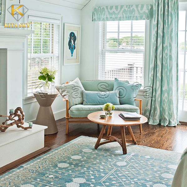 Sofa màu xanh ngọc phối cùng màu xanh lam