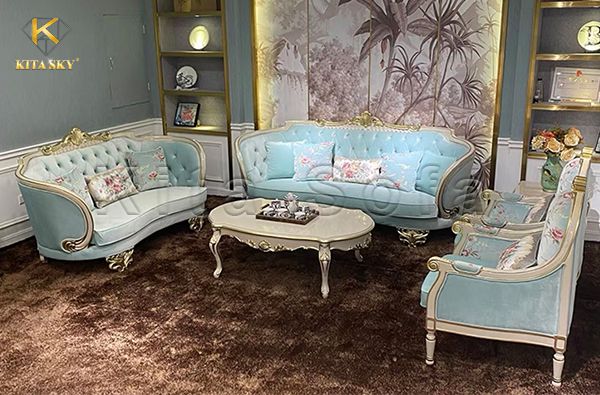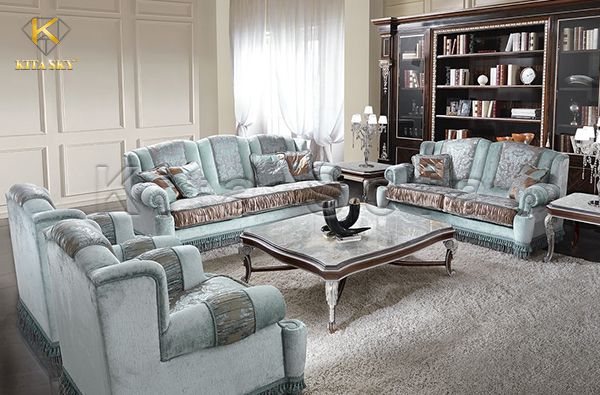 Bằng một cách nào đó, những mẫu bàn ghế sofa mang nét đẹp cổ điển, tân cổ điển luôn có một sức hút mạnh mẽ với những ai yêu thích nội thất. Nó trở thành một chuẩn mực của sự đẳng cấp, xa hoa mà bao người mong muốn sở hữu. Có một sự thật là gam màu xanh ngọc cực kỳ hợp với những mẫu sofa cổ điển hay tân cổ điển. Nét đẹp thanh nhã đi cùng những đường chạm trỗ sắc xảo tạo nên một vẻ đẹp sang trọng hoàn hảo.